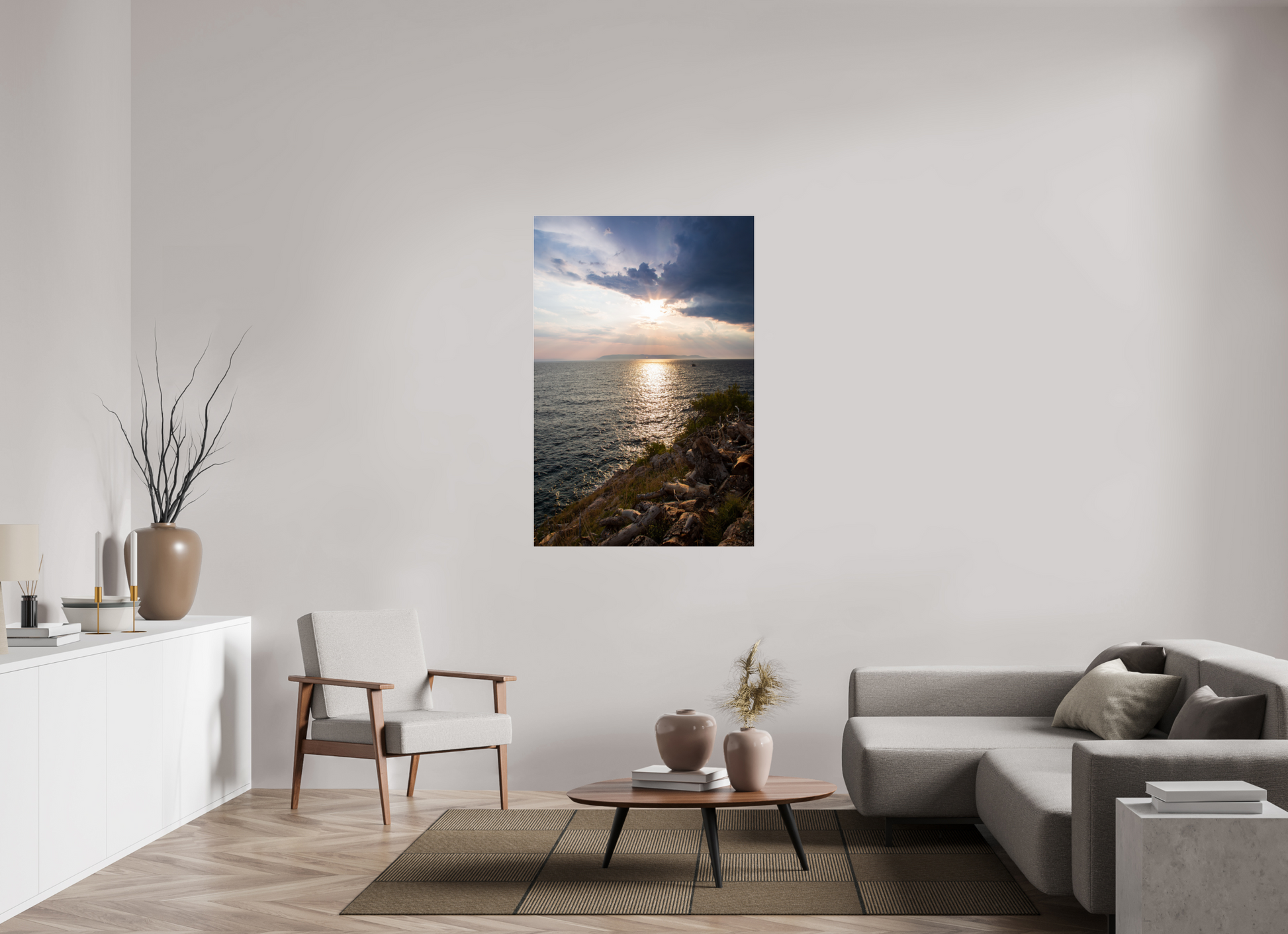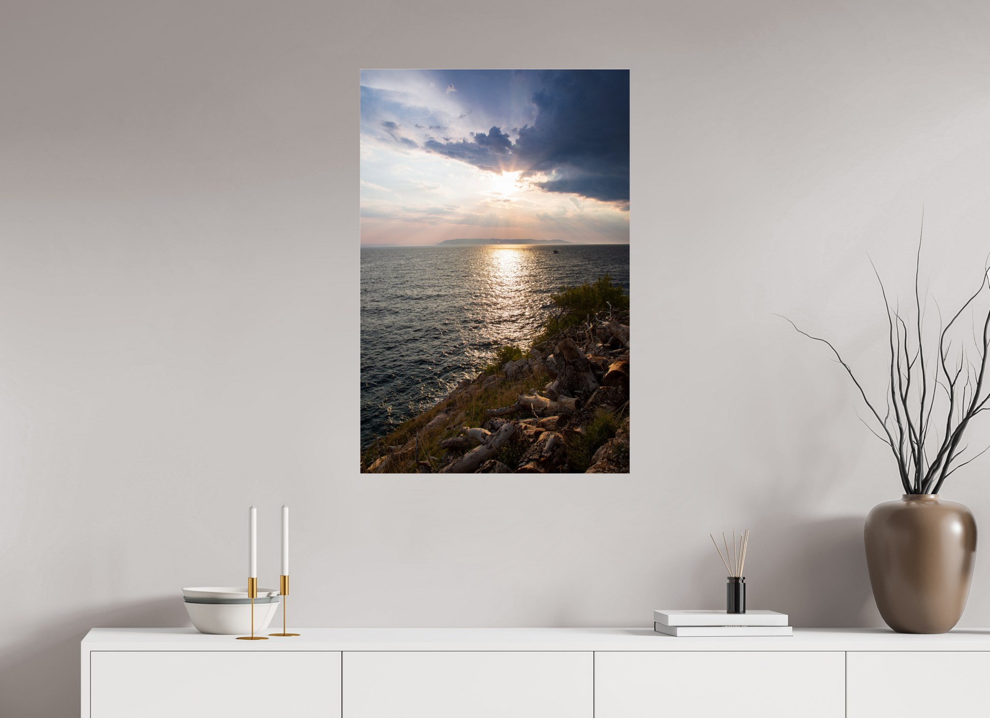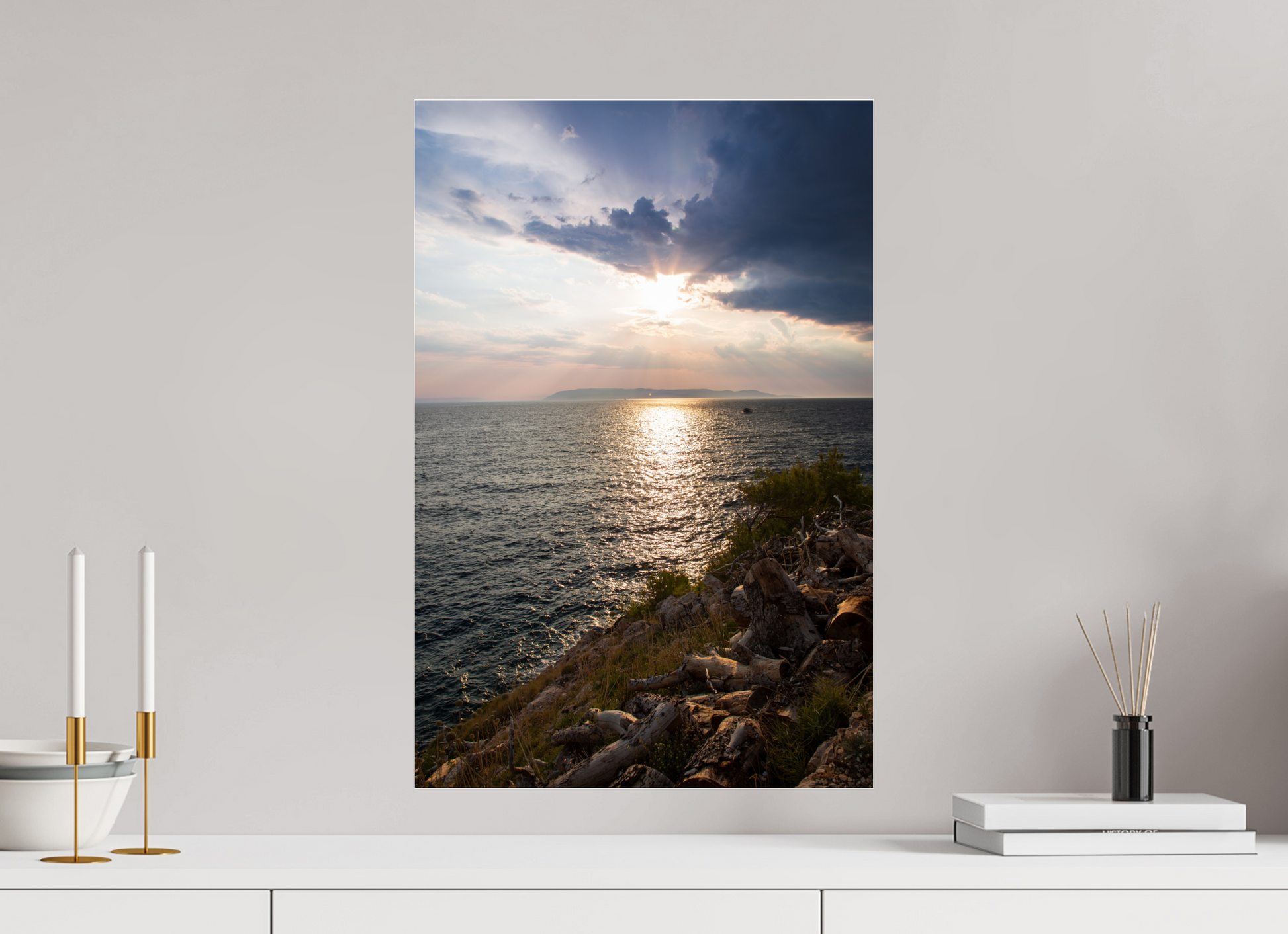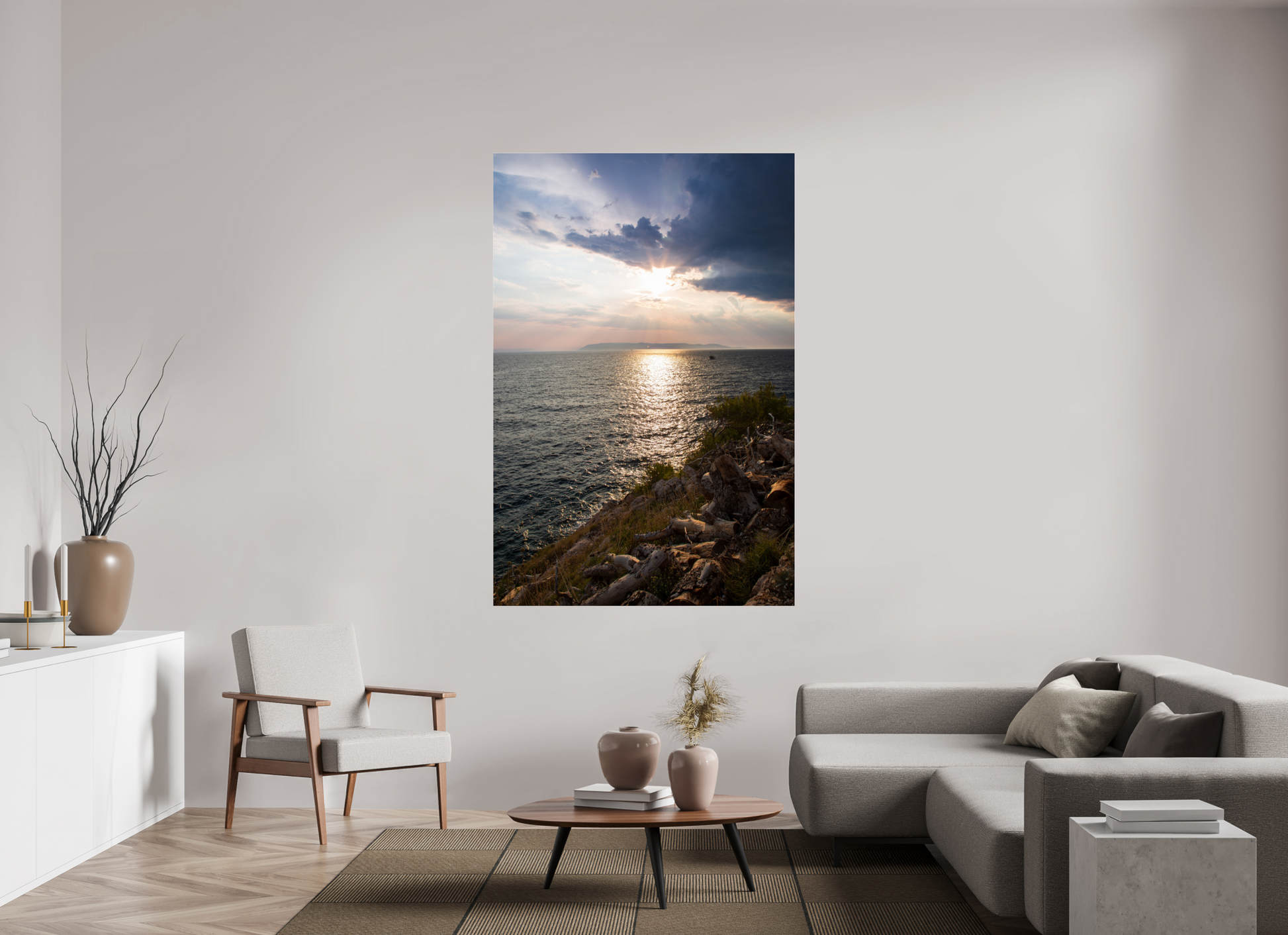 "Dramatically sky" – ein Fine Art Print, der die Schönheit einer Küstenlandschaft bei Sonnenuntergang detailgetreu wiedergibt. Die warmen Farben, die Texturen der Baumstämme und die Weite des Meeres schaffen ein eindrucksvolles Bild. Erhältlich als hochwertiger Fineartprint oder als Acrylglasdruck.