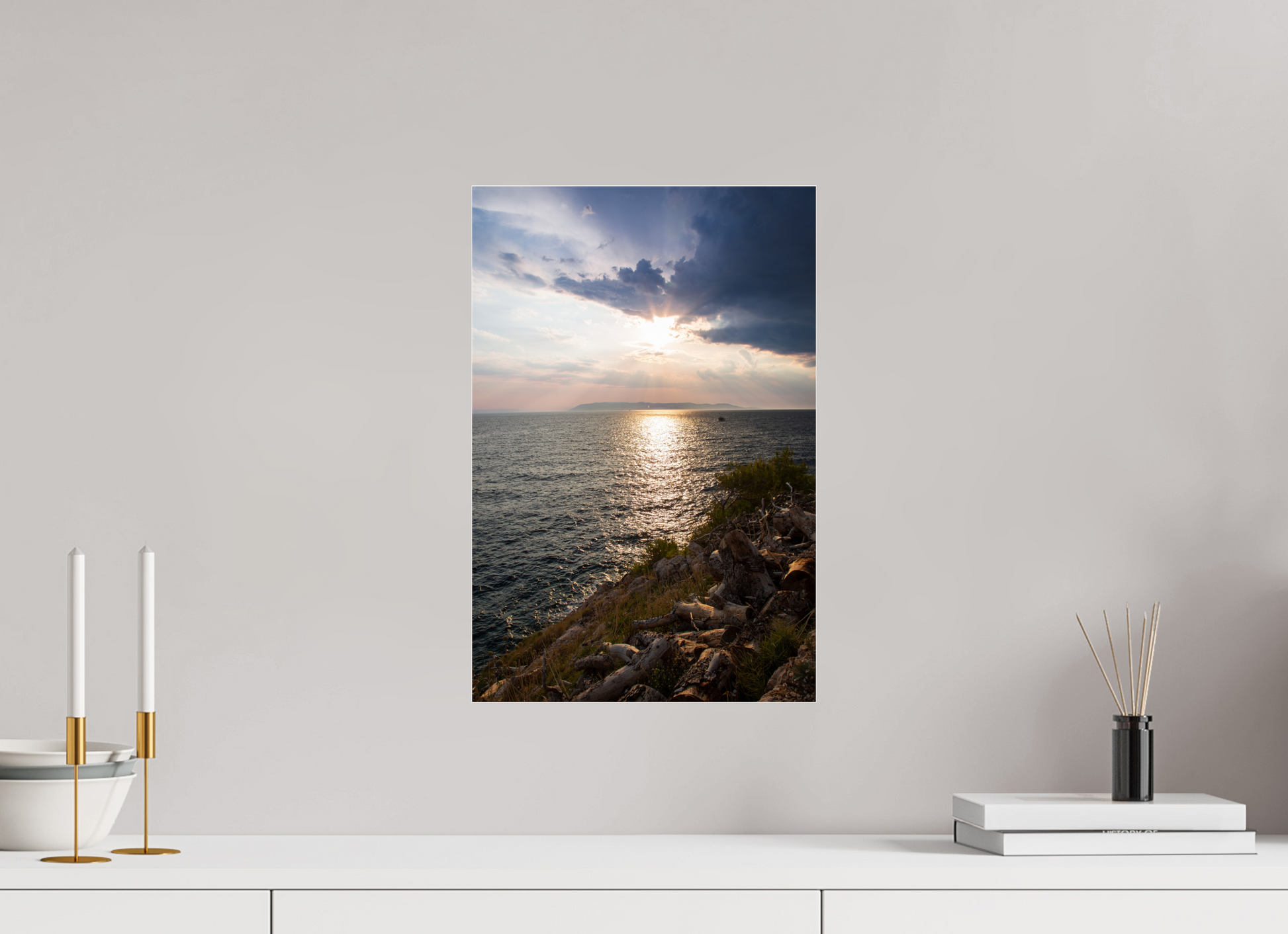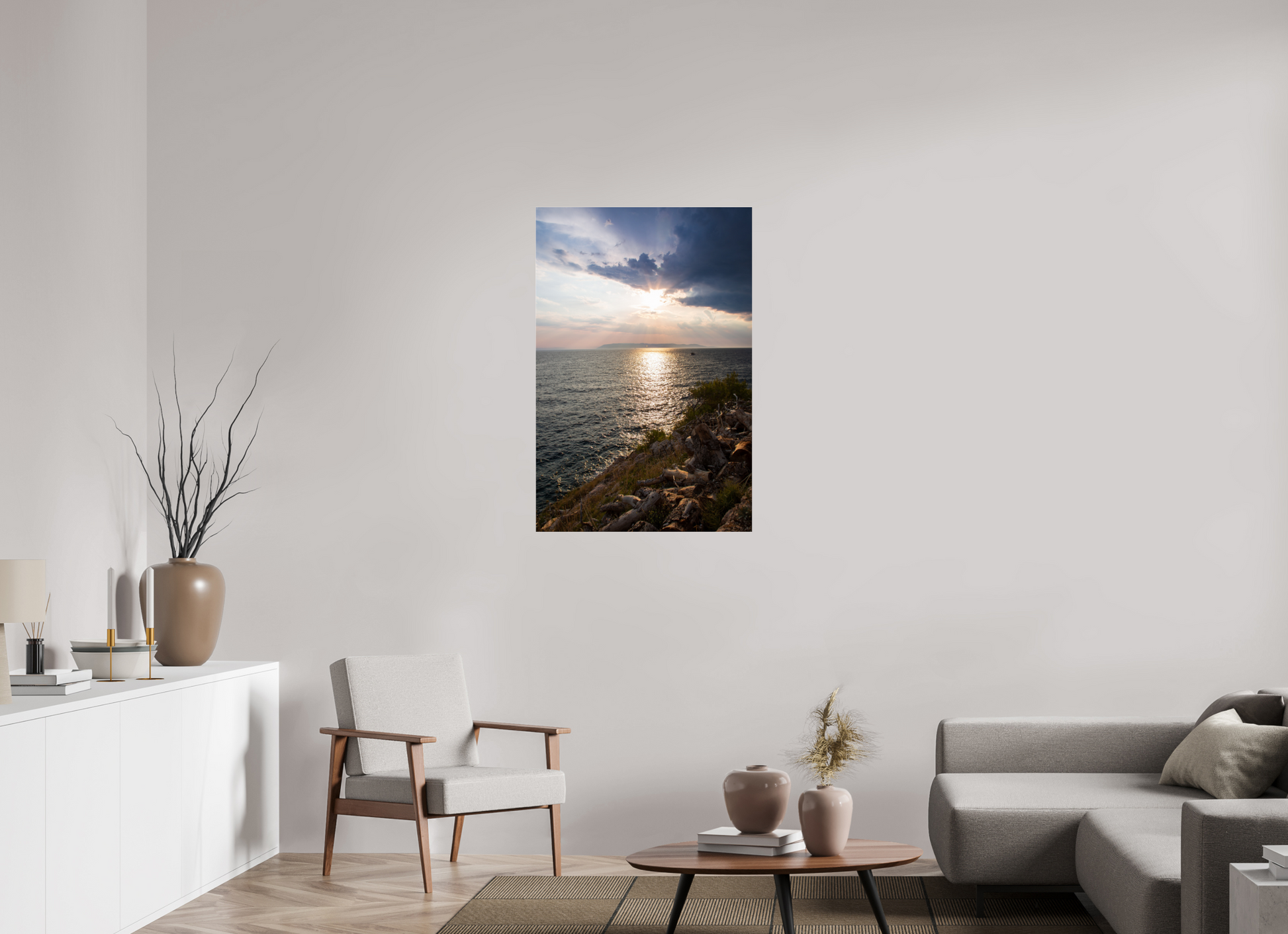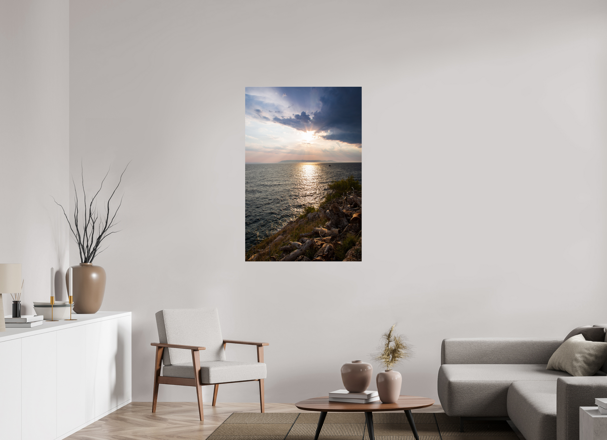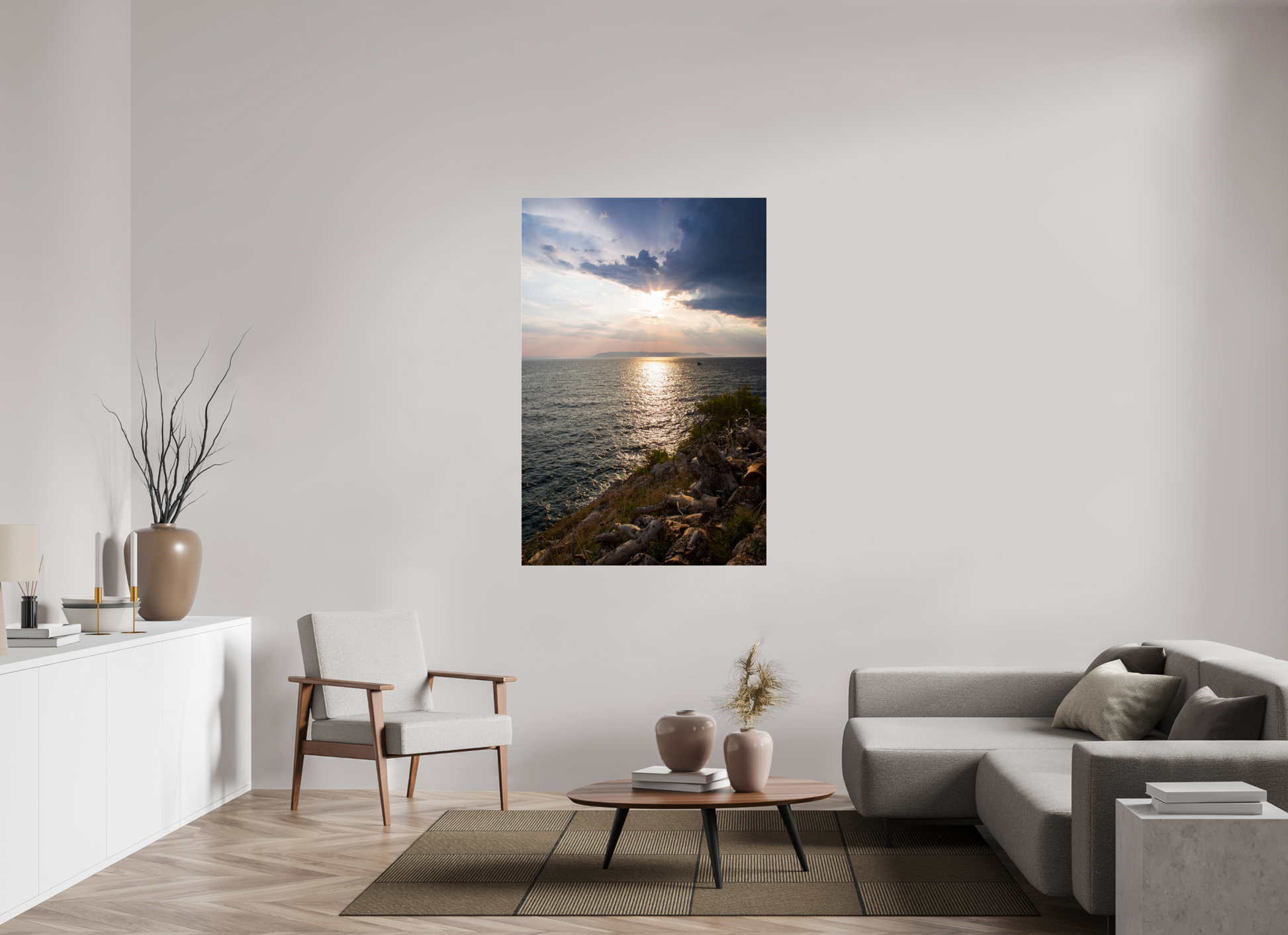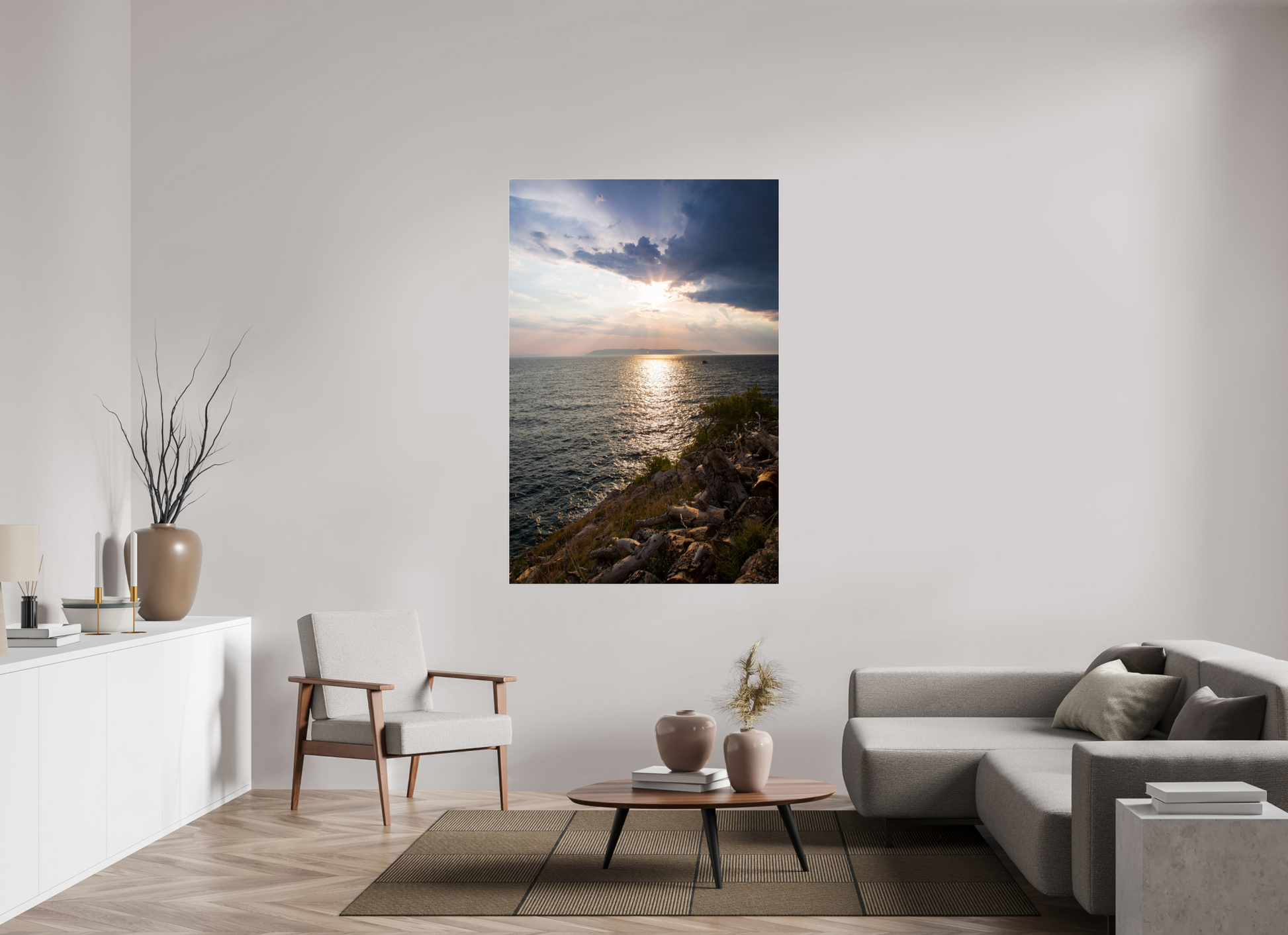"Dramatically sky" – ein Fine Art Print, der die Schönheit einer Küstenlandschaft bei Sonnenuntergang detailgetreu wiedergibt. Die warmen Farben, die Texturen der Baumstämme und die Weite des Meeres schaffen ein eindrucksvolles Bild. Erhältlich als hochwertiger Fineartprint oder als Acrylglasdruck.