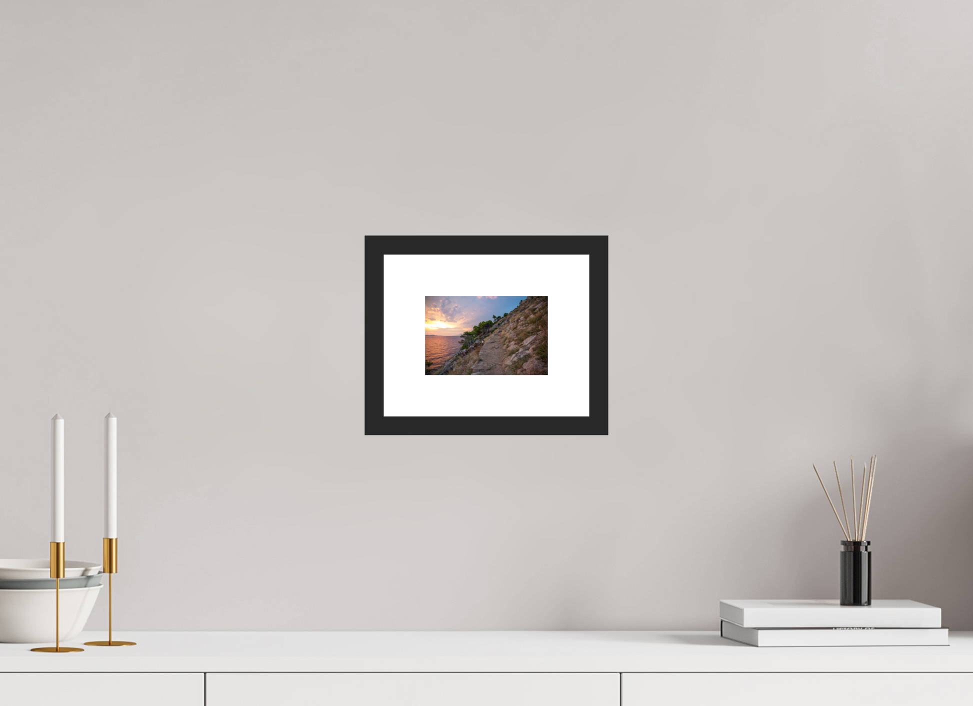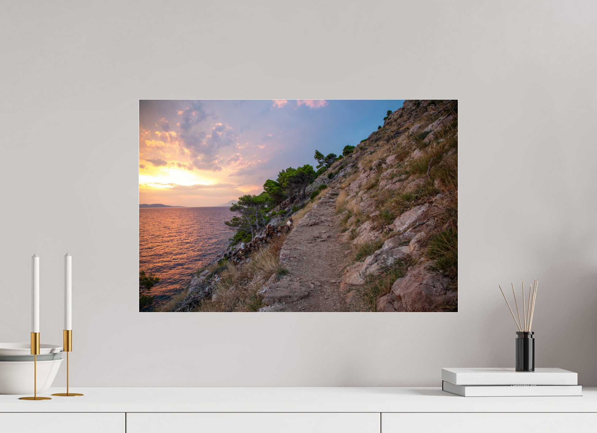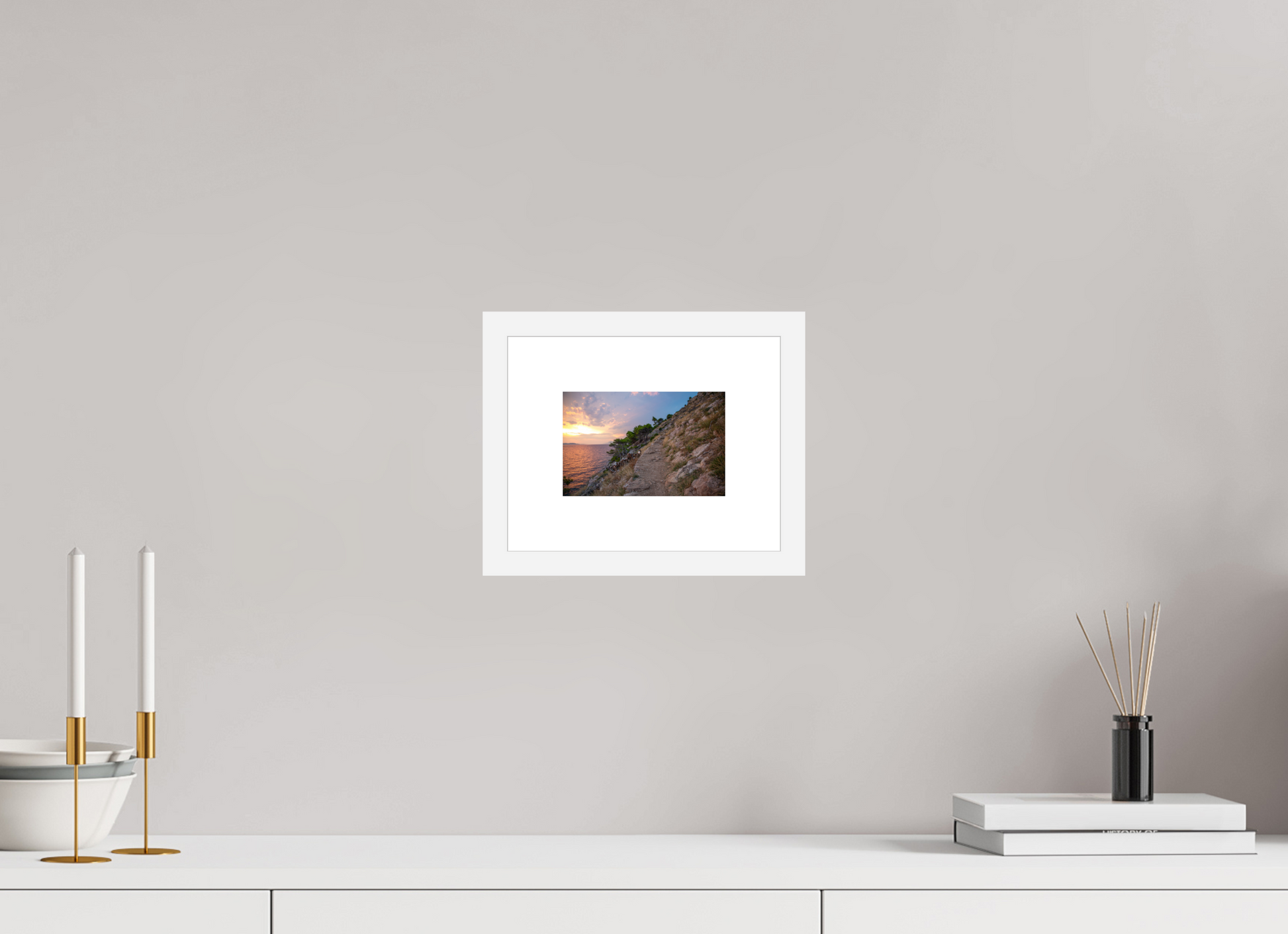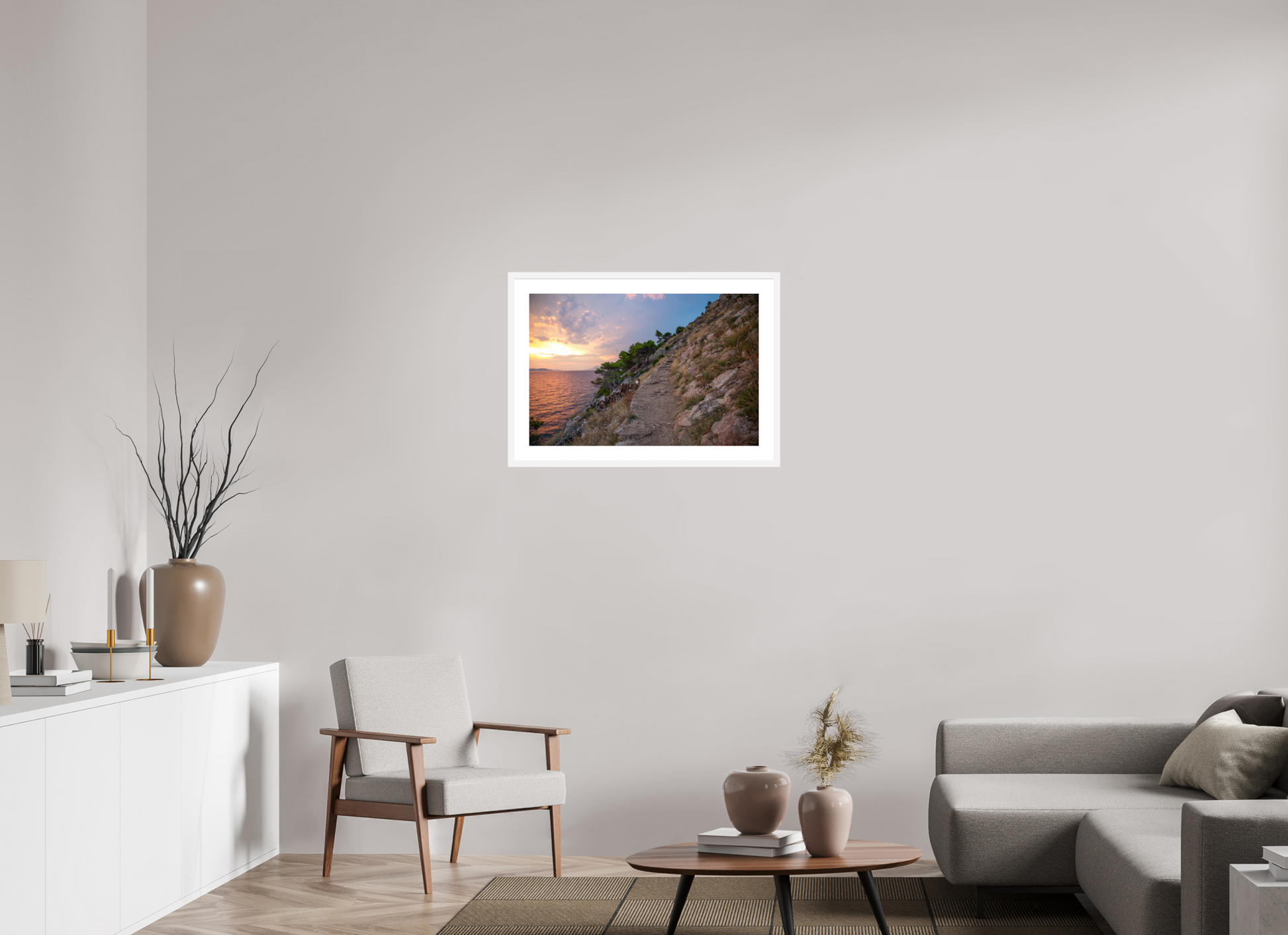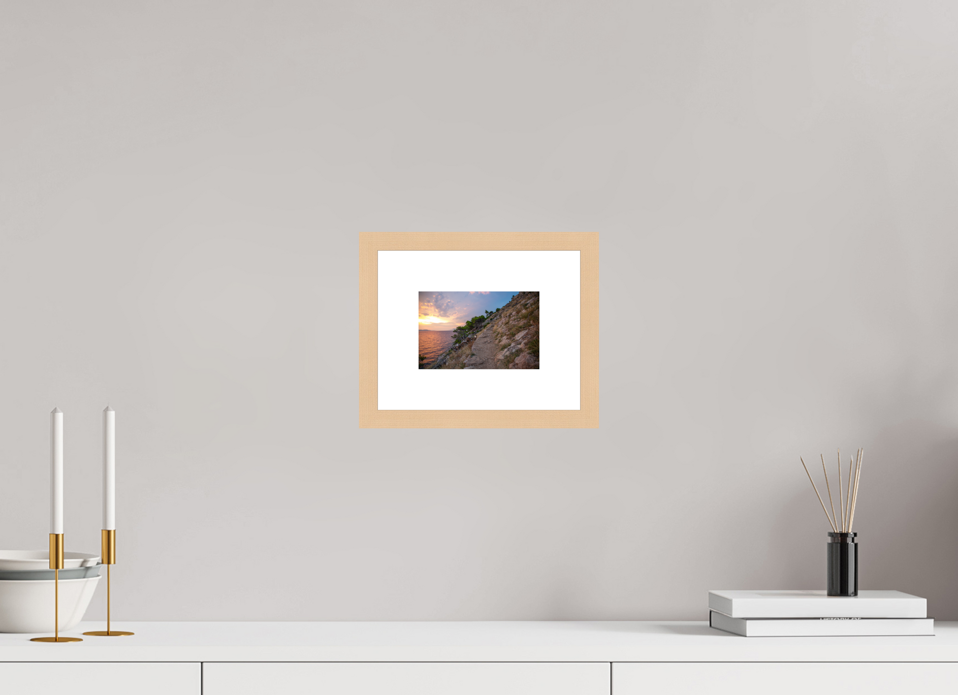 Fangen Sie die Magie des Sonnenuntergangs ein! Dieser Fine Art Print zeigt eine atemberaubende Küstenlandschaft in warmen Farben. Erhältlich als Acrylglasdruck für einen modernen Look oder als klassischer gerahmter Druck.