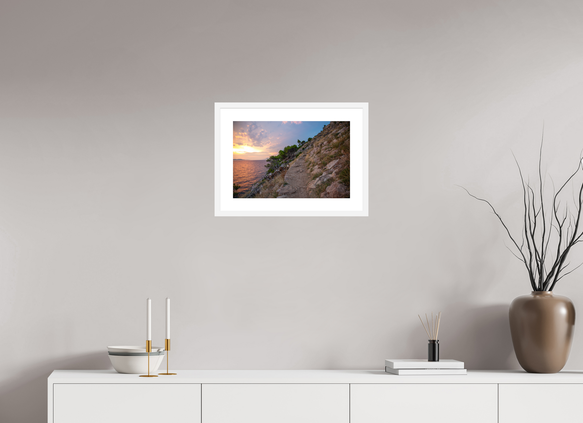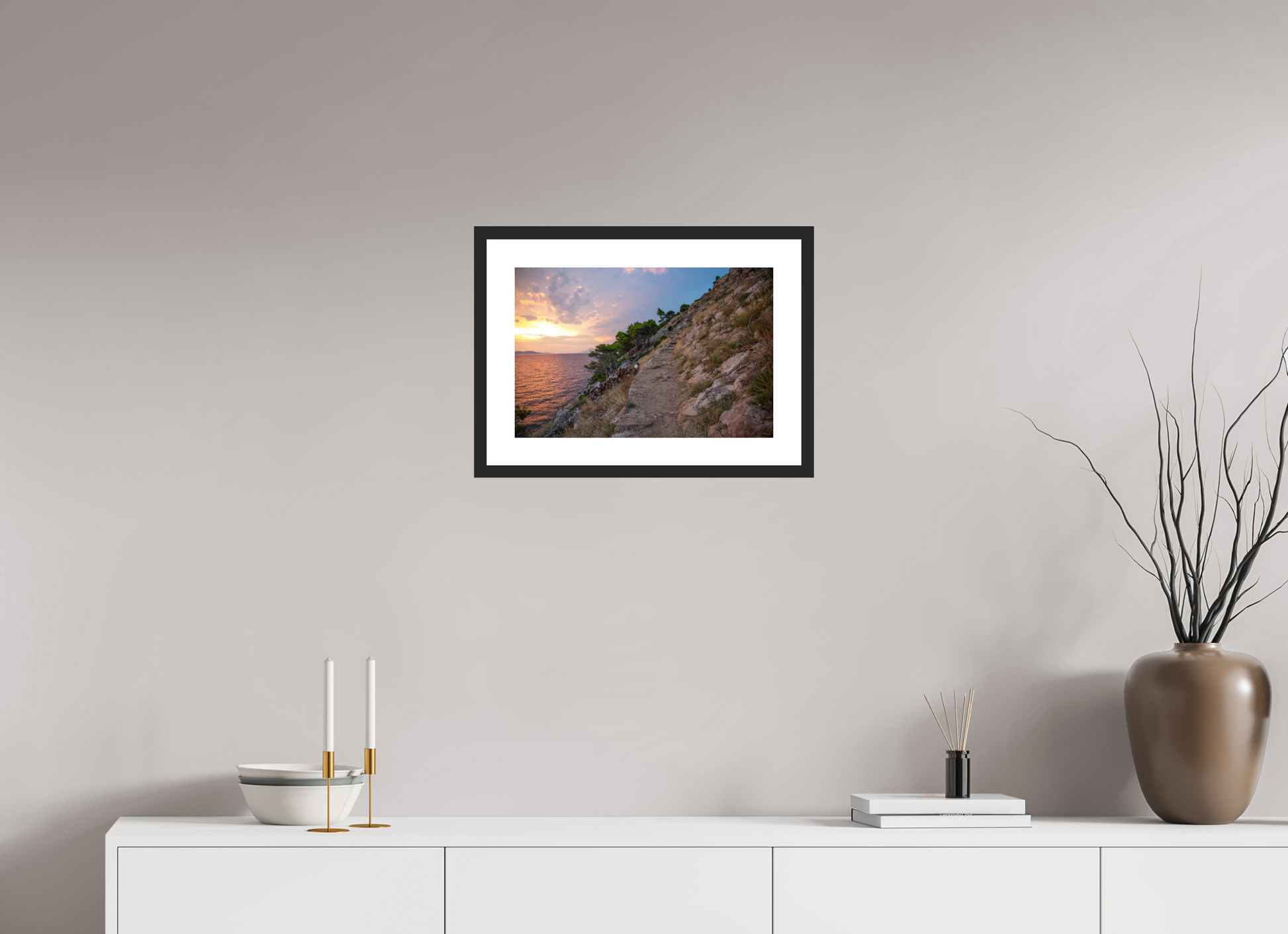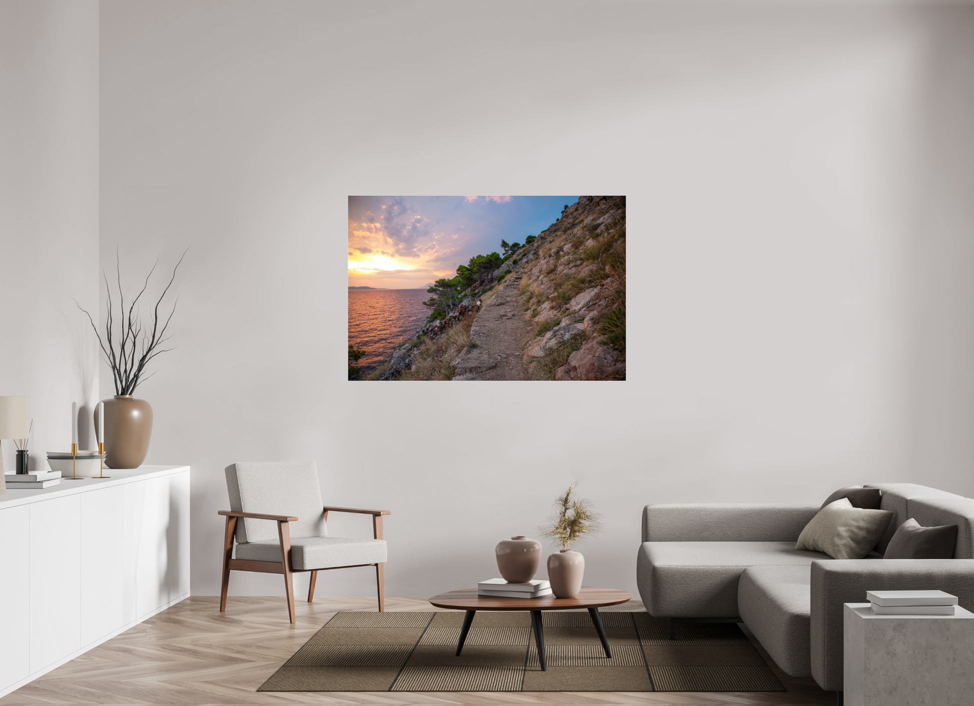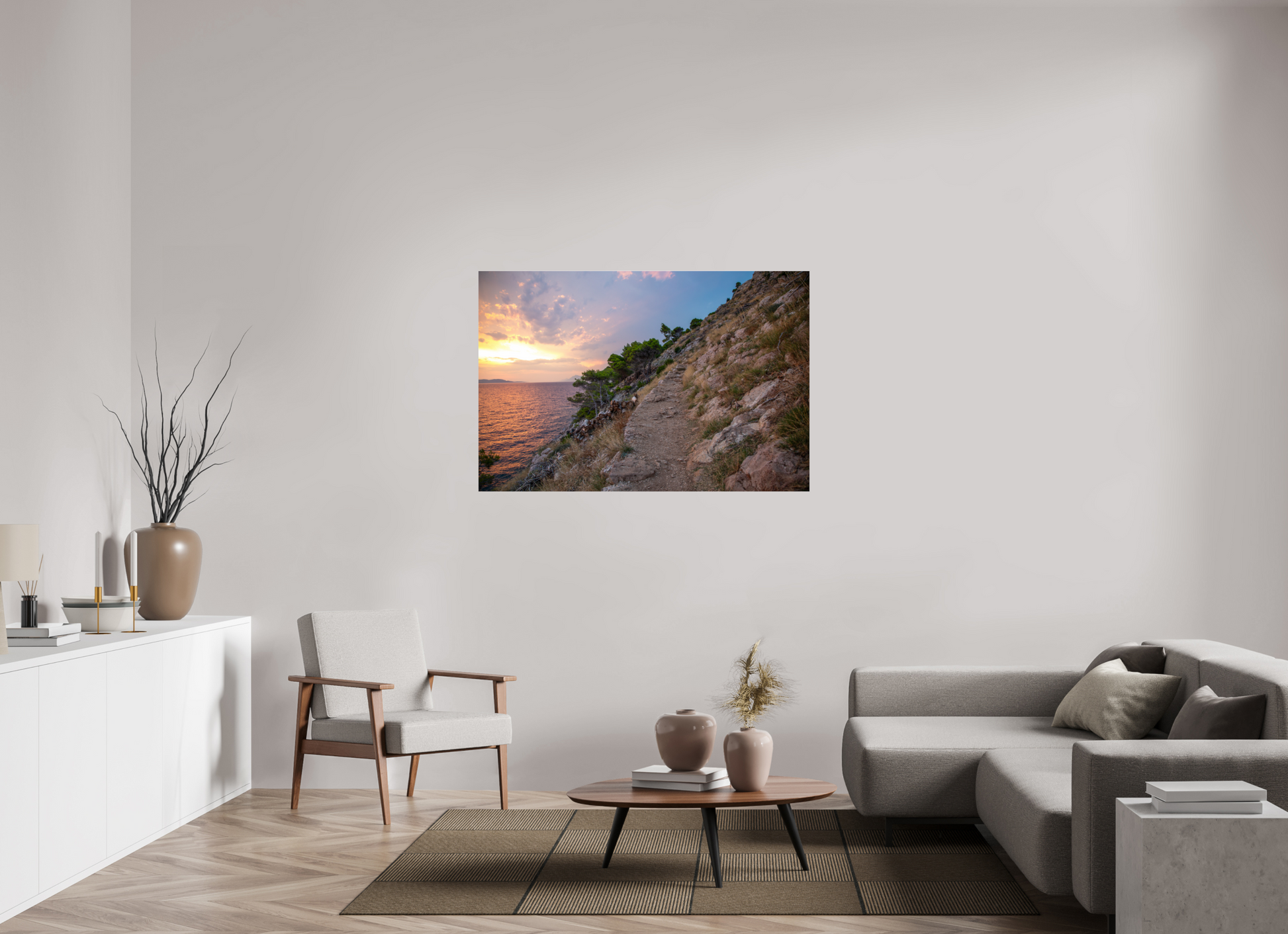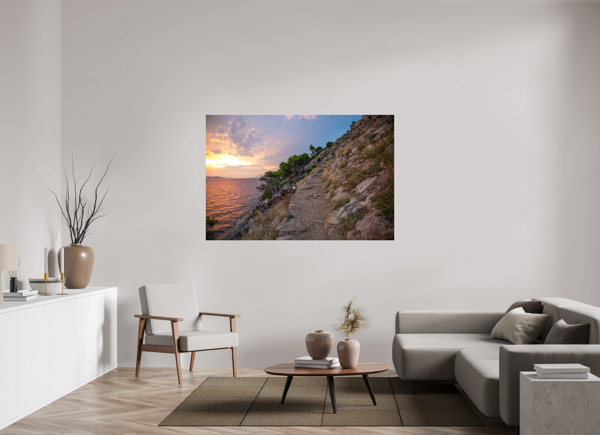 Fangen Sie die Magie des Sonnenuntergangs ein! Dieser Fine Art Print zeigt eine atemberaubende Küstenlandschaft in warmen Farben. Erhältlich als Acrylglasdruck für einen modernen Look oder als klassischer gerahmter Druck.
