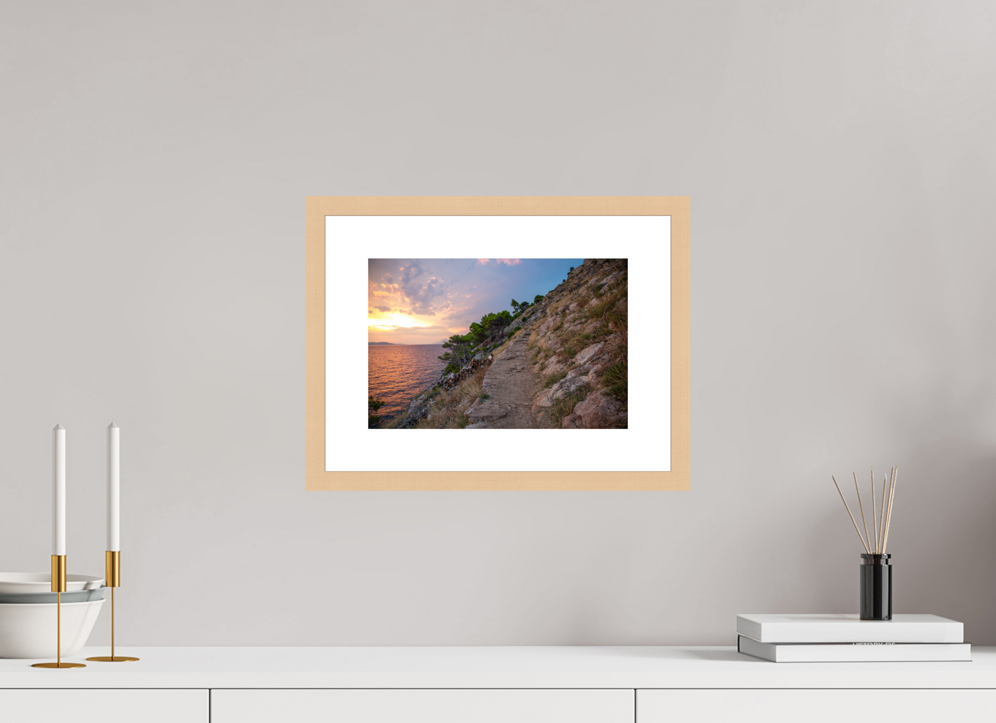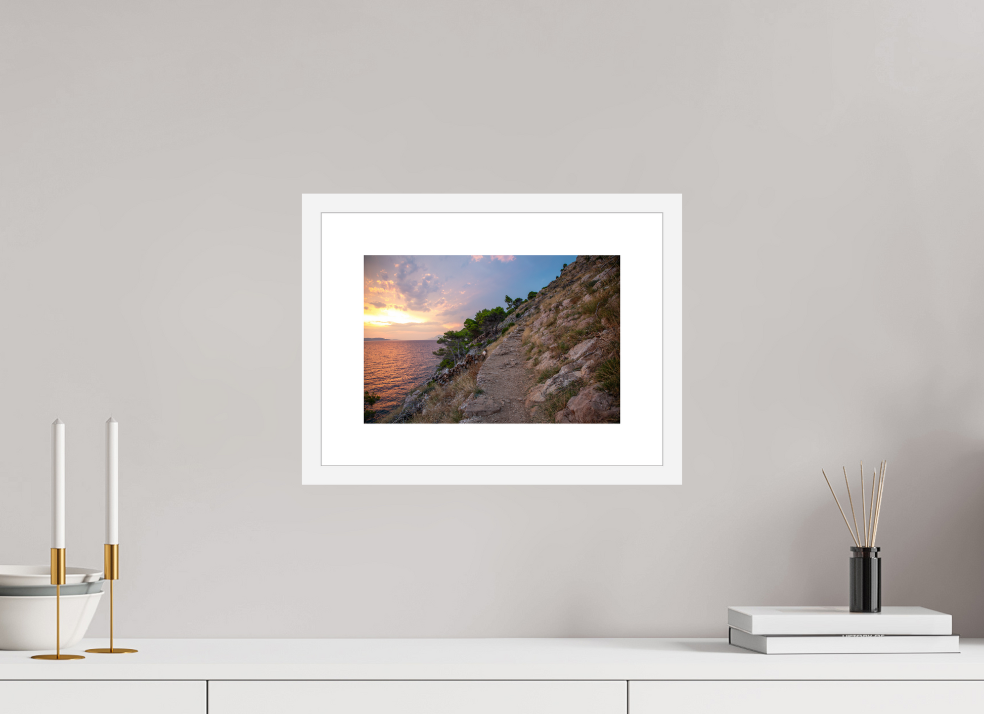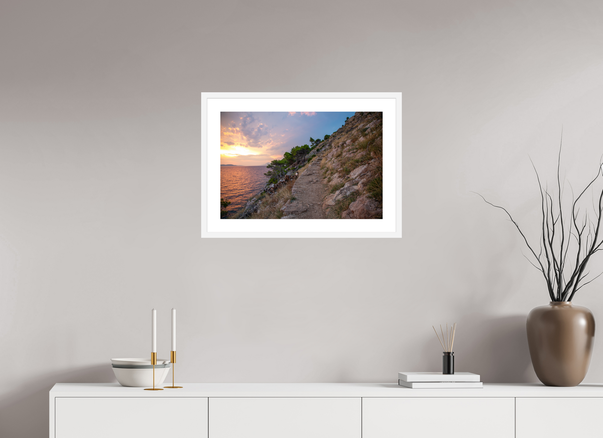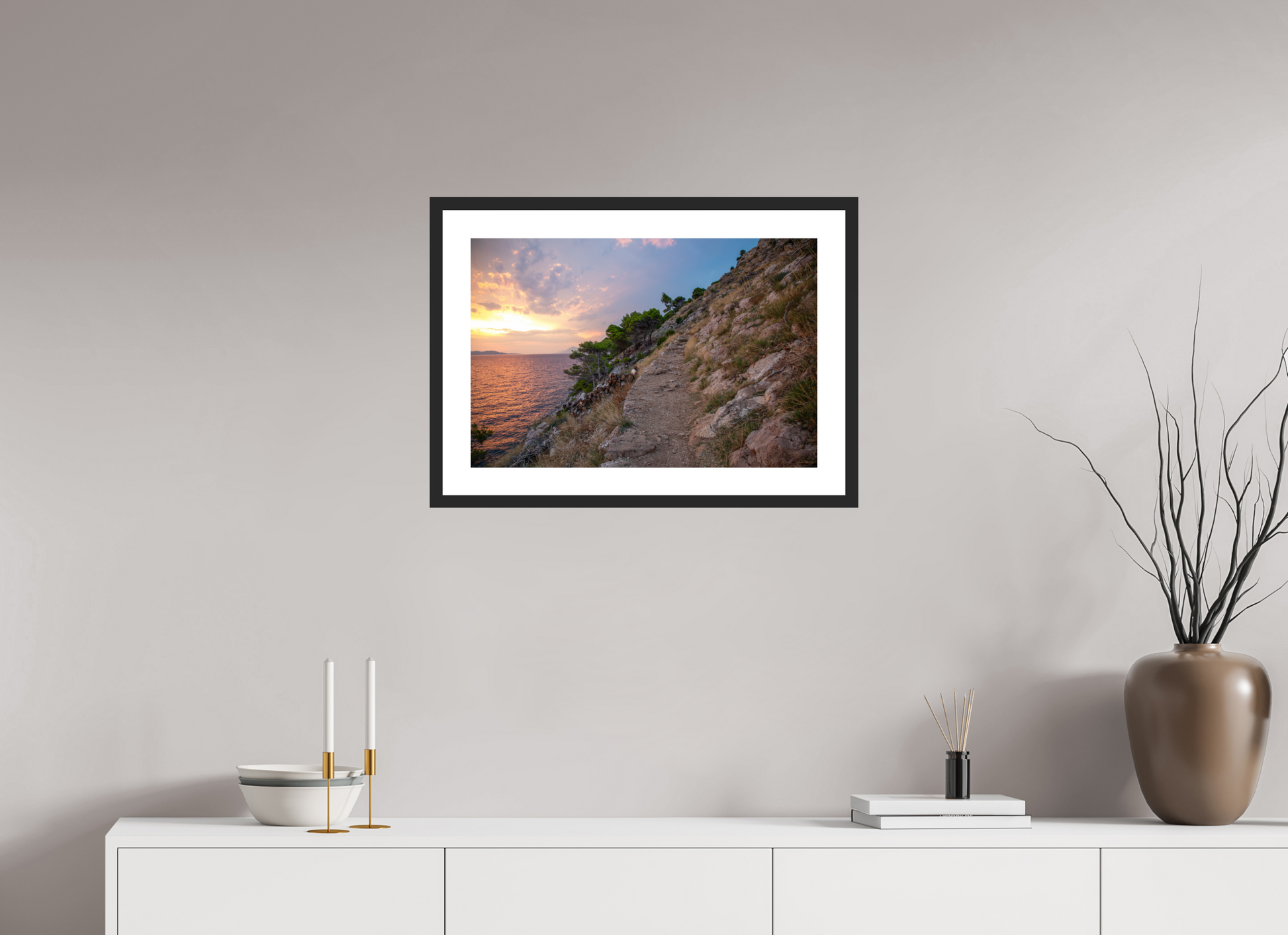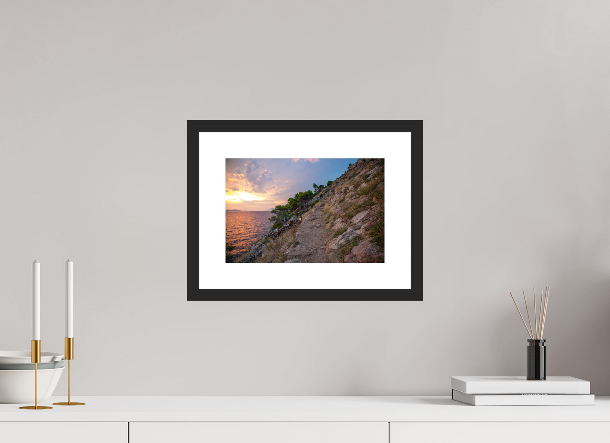 Fangen Sie die Magie des Sonnenuntergangs ein! Dieser Fine Art Print zeigt eine atemberaubende Küstenlandschaft in warmen Farben. Erhältlich als Acrylglasdruck für einen modernen Look oder als klassischer gerahmter Druck.